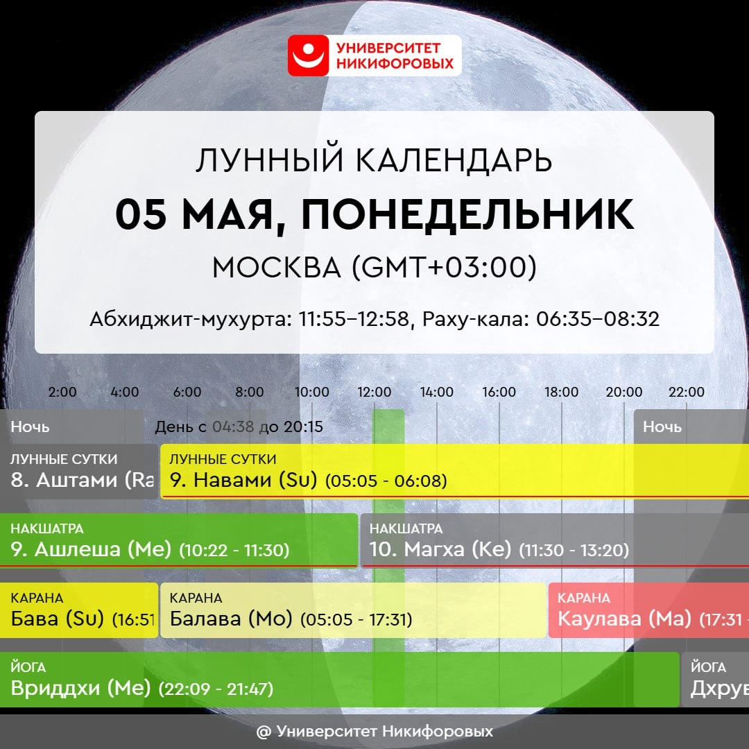 5 МАЯ, ПОНЕДЕЛЬНИК Первый день недели открывается с энергетики лунных суток “пустые руки”, поэтому если вы хотели что-то начать делать с понедельника, лучше отложить. Время подходит для того, чтобы продолжать начатое ранее, заниматься повседневным, но не для нового. Выбросите хотя бы одну вещь с Северо-Западного или Восточного сектора вашей квартиры – этим вы немного очистите пространство, чтобы оно могло вбирать созидательную энергию и делиться ею с вами. После 11:30 наступает мощное время для Родовых практик. Очень хорошо зажечь свечу за своих ушедших предков, поблагодарить их за все, а после попросить помочь в решении ваших проблем, попросить убрать препятствия с вашего пути. Ваш Род – это ваша сила, они всегда с вами и всегда готовы прийти на помощь.