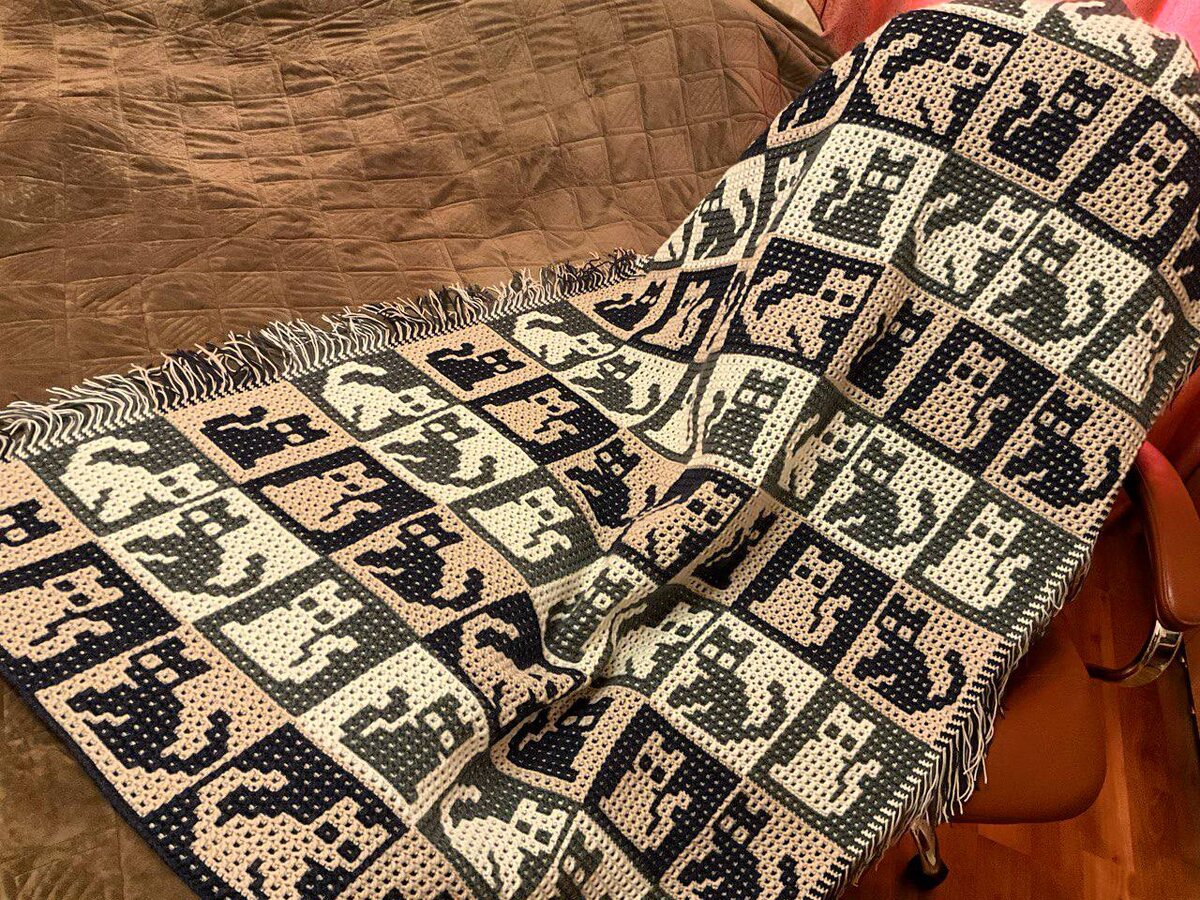 КотоПлед. Новости наших чатов Работа Ольги из чата «КотоПлед»🔥 Ольга: «Всем привет! Ещё один Котоплед в копилку нашего чата, а точнее в огромную «Гвардию Юлиных Котов»). Описание: пряжа Пехорка детская новинка, цвета - Самшит с Суровым, Джинсовый с Фрез. В две нитки, крючок 3,5. Размеры 190 на 115 см, вес 1,8 кг. Вязала в подарок «лысому Феликсу» (сфинксу). Цвета подбирала под его окрас, чтобы маскировался от хозяев). Надеюсь, что и Феликсу, и хозяевам плед понравится). Юля, принимайте (с большой моей благодарностью) очередных 77 котов в Вашу гвардию!» КотоПлед — чат и схема: https://t.me/kotopled