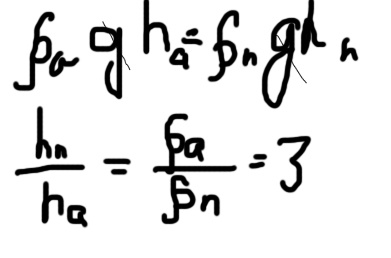 Два цилиндра, один алюминиевый, а второй из парафина, стоят на столе. Плотность алюминия ρ1=2,7г/см3, плотность парафина ρ2=0,9 г/см3. Давления цилиндров на стол одинаковы и равны p. Если цилиндр из парафина поставить на алюминиевый цилиндр, давление полученной конструкции на стол станет равно 5p. Определите отношение высоты цилиндра из парафина к высоте алюминиевого цилиндра. Ответ округлите до десятых. Для ответа на этот вопрос достаточно только половины данных. Давления цилиндров одинаковые, сила с которой они давят на стол равна их силе тяжести, значит давление на стол наше любименькое ро жэ аш. И теперь надо эти давления просто приравнять. Ответ 3 Определите отношение площади сечения цилиндра из парафина к площади сечения алюминиевого цилиндра S2/S1. Ответ округлите до десятых. А теперь самое время вспомнить, что цилиндр из парафина поставили на цилиндр из алюминия. Давление с одной стороны получилось как сила тяжести 2х цилиндров, деленная на площадь сечения цилиндра из алюминия