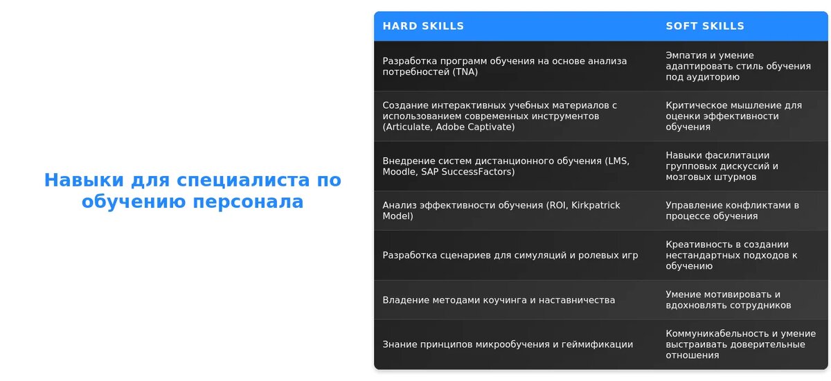 "Специалист по обучению персонала с опытом внедрения LMS и разработки учебных программ."