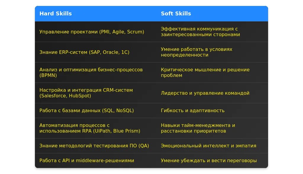 - Добавьте ключевые навыки: управление проектами, работа с ПО, аналитика.
