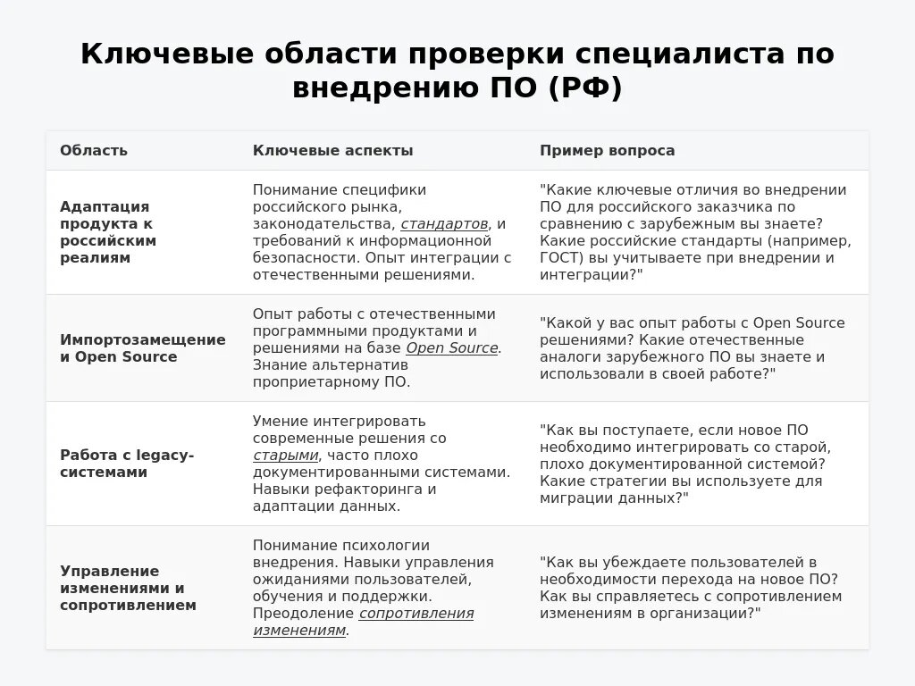 Подготовка к собеседованию на позицию специалиста по внедрению ПО