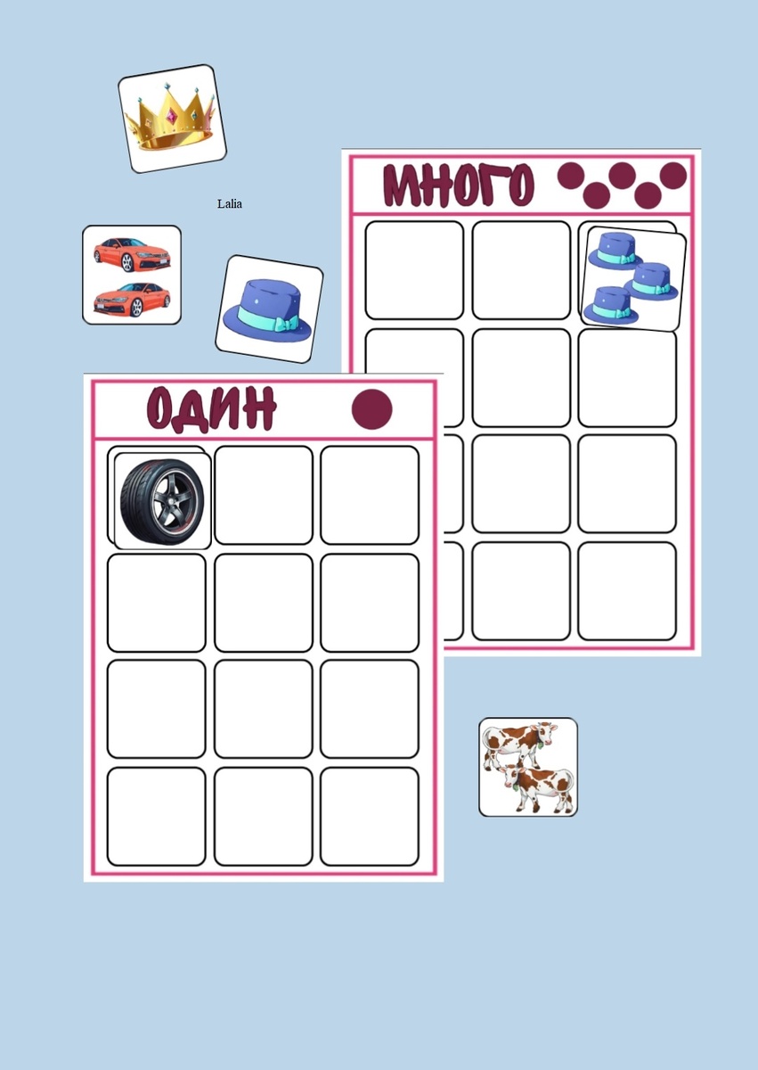 Цель игры: Отработка слов 2 типа слоговой структуры; образование существительных во множественном числе именительного падежа. Правила игры: Перед ребенком лежат 2 поля (один и много) и карточки. Необходимо разложить карточки на подходящие поля, называя их.