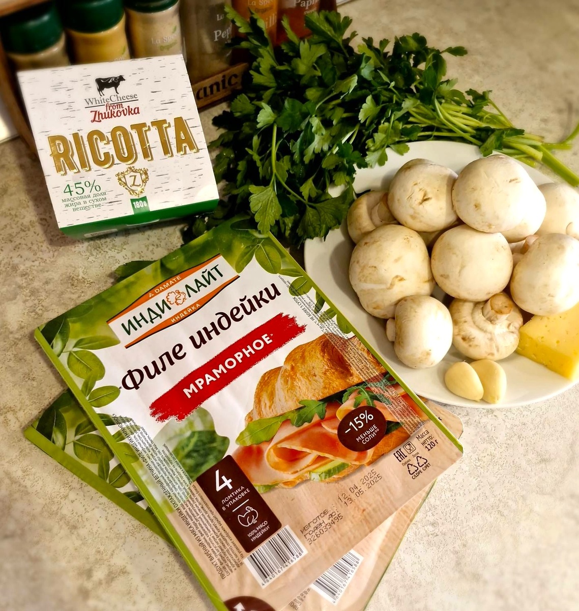 Горячая закуска - Рулетики из ветчины с грибами в духовке