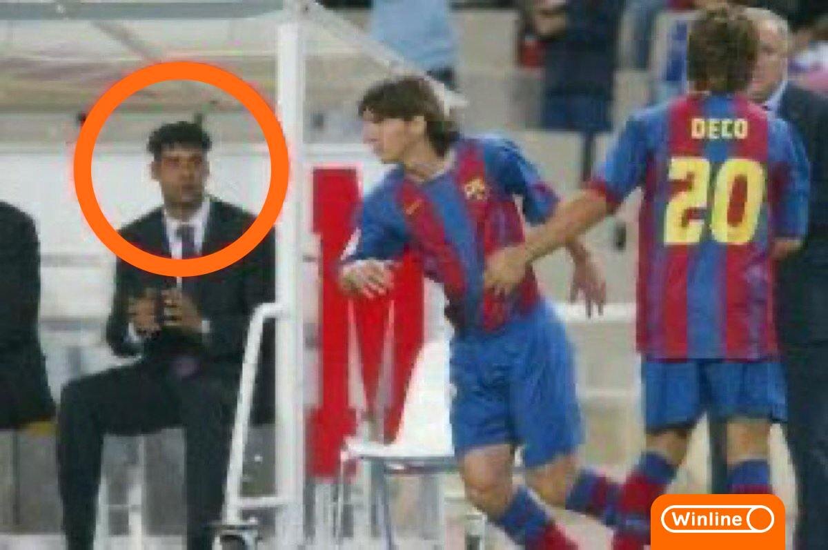 Архивные кадры: молодой Ламин Ямаль наблюдает за дебютом Лионеля Месси. 16 октября 2004 года, матч чемпионата Испании против Эспаньола. #КомментРетро