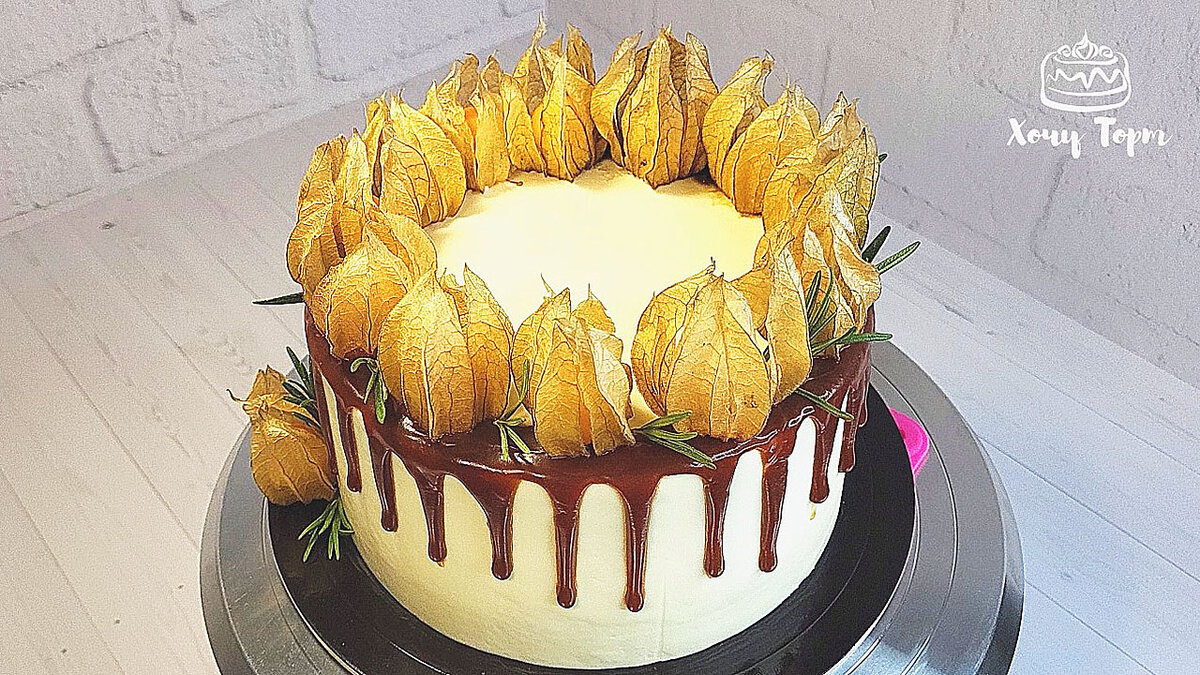 украсила физалисом и дополнила иголочками розмарина.