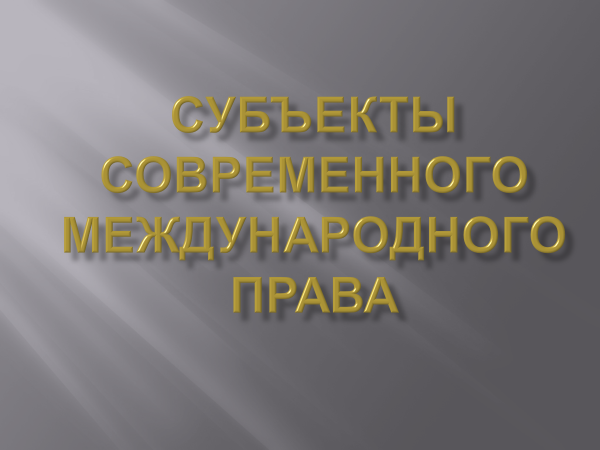 СУБЪЕКТЫ СОВРЕМЕННОГО МЕЖДУНАРОДНОГО ПРАВА