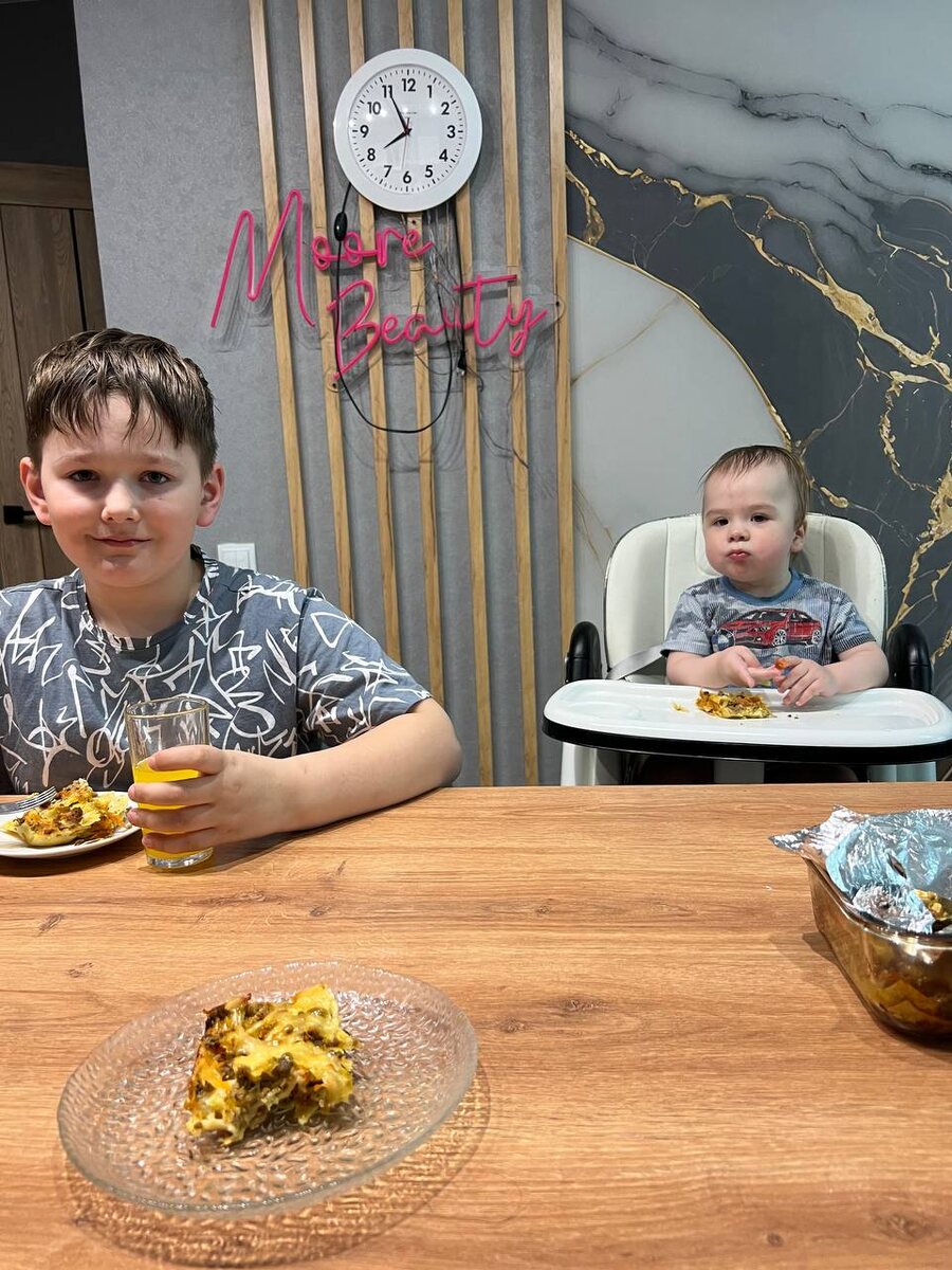 С малышами поиграли на площадке, искупались в ванной, теперь кушают лазанью🥰🧘♀️