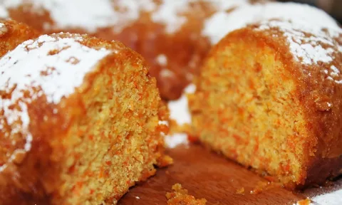 Морковный кекс имеет корни в средневековой Европе, где морковь использовалась как заменитель дорогостоящего сахара. Современная популярность пришла во время Второй мировой войны из-за дефицита продуктов. Версия с кефиром, вероятно, возникла в Восточной Европе (Россия, Украина, Кавказ), где кефир — традиционный кисломолочный продукт. Местные кулинары адаптировали рецепт, заменив молоко или пахту на кефир для повышения влажности и придания лёгкой кислинки, используя доступные ингредиенты. Процесс приготовления: Ингредиенты: - Морковь (тёртая), мука, сахар, яйца, кефир, растительное масло, разрыхлитель/сода, корица, орехи/изюм. Технология: - Смешивание сухих ингредиентов: Мука, сода, специи. - Взбивание влажных компонентов: Яйца, сахар, масло, кефир. Кислота кефира реагирует с содой, обеспечивая пышность. - Объединение: Сухую смесь постепенно вводят во влажную, добавляют морковь и наполнители (орехи/изюм). - Выпечка: Форму с тестом выпекают при 180°C 40-50 минут. Особенности: - Кефир д