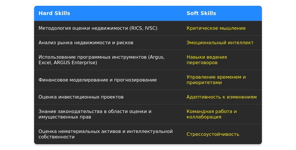 После: "Владение международными стандартами оценки, опыт работы с оценкой недвижимости, навыки подготовки отчетов, знание законодательства в области оценки."