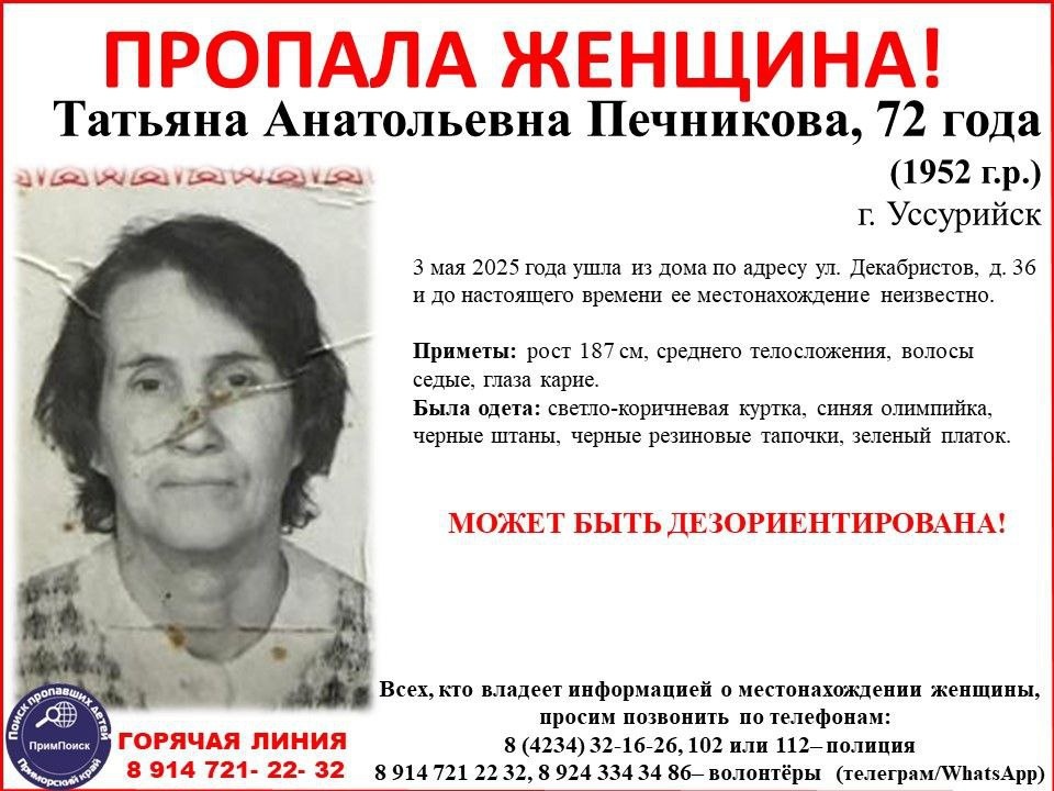 3 мая 2025 года ушла из дома по адресу ул. Декабристов, д. 36 и до настоящего времени ее местонахождение неизвестно.