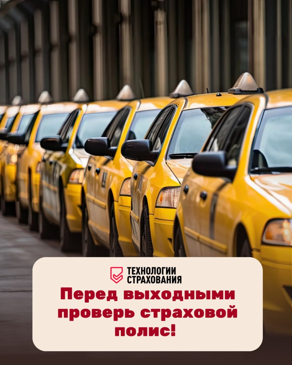 Перед выходными проверь страховой полис! ⠀ Впереди длинные майские праздники и короткие рабочие недели. Страховые компании тоже будут работать с перерывами, поэтому лучше заранее проверить: ✅ ОСАГО ✅ ОСГОП ⠀ Не откладывайте на последний момент! Без действующего полиса нельзя выходить на линию — а наказания в праздники никому не нужны. ⠀ Напоминаем: в «Технологиях страхования» можно быстро оформить ОСАГО для такси на [1 месяц всего за 5 250 ₽](https://dzen.ru/id/65689138a0eb1c67698b054c вне зависимости от КМБ и других нюансов. Работайте спокойно в праздники, а о страховке позаботимся мы! 📞 +79031020222 | ✉️ salehttps://t.me/vs_yandex @Высокий Спрос Ваш таксопарк: «Высокий спрос» 🚕 89697774262 📲 Комиссия от 1% 💰 (Подключаем ко всем фирмам такси и доставки) 🚗📦 #такси #водитель #курьер