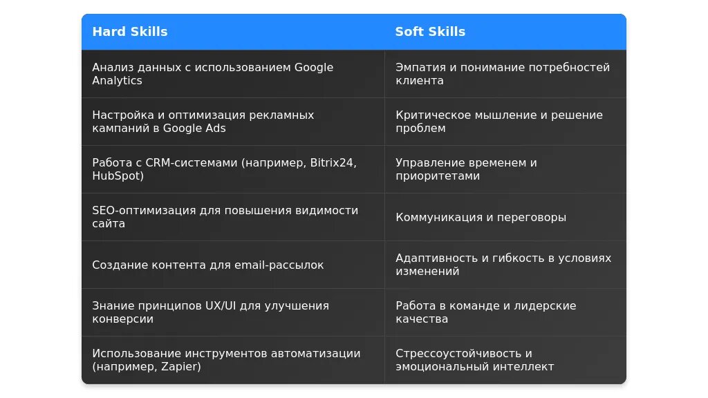 До адаптации: "Навыки: Excel, Google Ads, SEO."