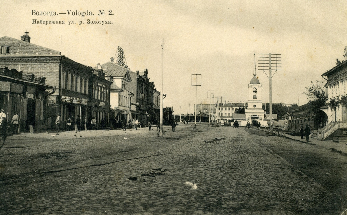 На открытке примерно 1911-12 годов Афанасьевская улица, хотя здесь она и подписана как Набережная реки Золотухи. Иногда фигурировала как Афанасьевская площадь. Сейчас это улица Марии Ульяновой и многие здания на снимке сохранились до наших дней. На второй карточке современный вид примерно с той же точки.