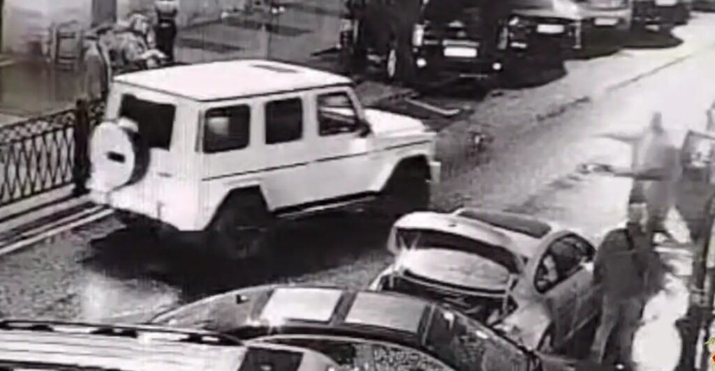 Ночью в субботу 32-летняя водительница «Геленвагена» выехала на тротуар у кафе на улице Рубинштейна, 24. В результате один из посетителей получил травму ноги и был госпитализирован. На видео, опубликованном пресс-службой главного управления МВД, можно было увидеть, что маневры белого Mercedes вызвали недовольство группы посетителей кафе, один из которых бросил стул в сторону автомобиля.