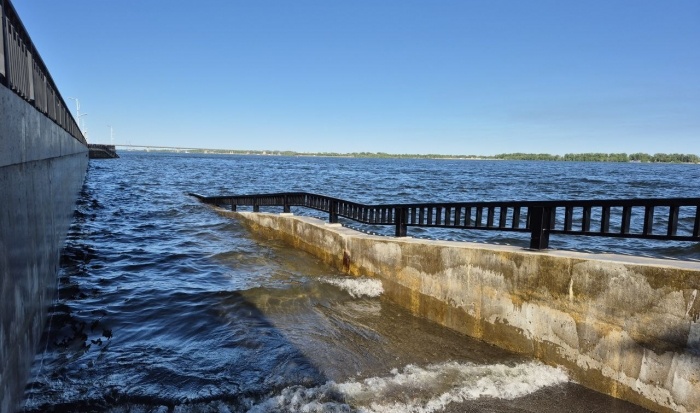 В воскресенье, 4 мая, в Волгограде частично подтопило Центральную набережную. На удивление отдыхающих под воду ушли причалы и ступени.