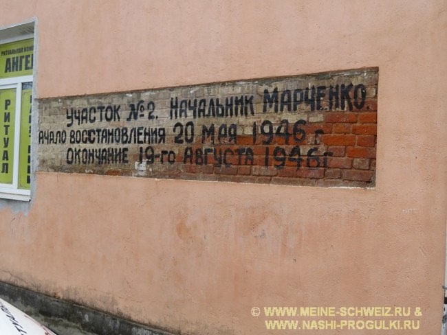На торцевой стене одного из домиков сохранилась историческая надпись, сделанная в первый послевоенный год (Смоленская ул., 11).