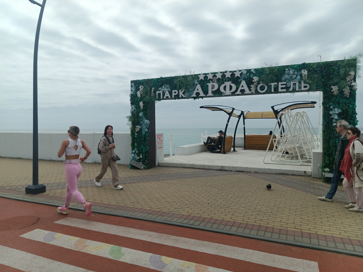 В чём смысл этих песчаных зон, кроме престижа мы не знаем. Всё равно весь основной пляж это крупная и очень крупная галька, а иногда и небольшие булыжники.
