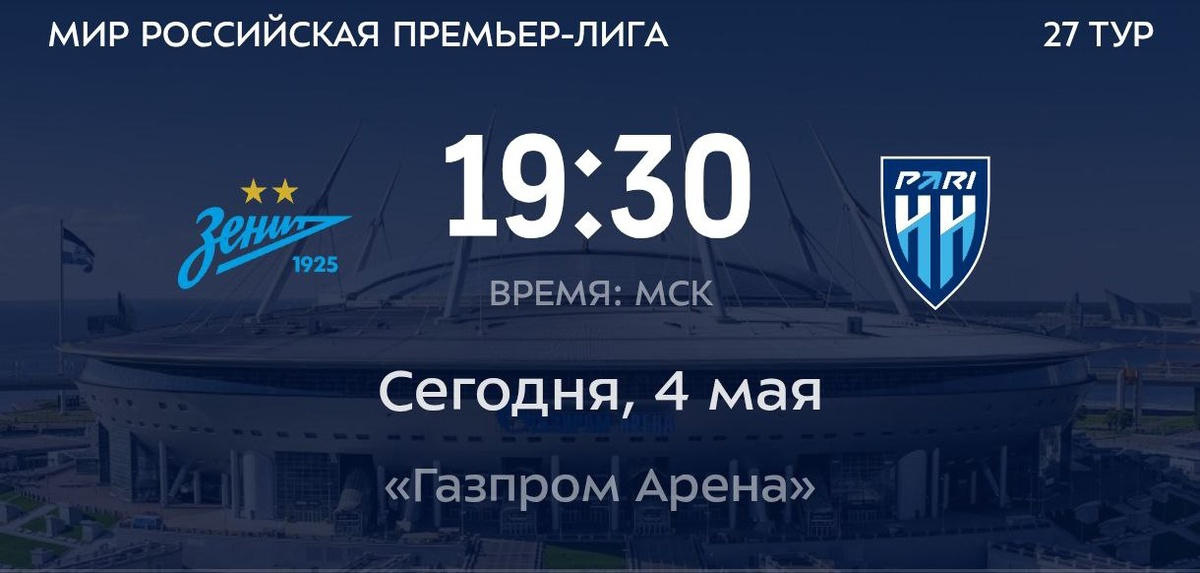 Кажется, перед таким матчем сложно рассчитывать на положительный результат: «Зенит» - гегемон российского футбола - играет на своём поле и продолжает борьбу за чемпионство. И вроде бы всё указывает на то, что «Пари НН» нечего ловить в этой игре, а главные матчи, в которых нужно забирать очки, будут с «Крыльями» и «Факелом». С другой стороны как раз в таких матчах как сегодня, против заведомо сильнейшего оппонента, когда на тебя никто не ставит, и случаются порой самые неожиданные исходы. Сегодня нижегородцам в Санкт-Петербурге нужно сыграть в свое удовольствие, максимально надежно отработать в обороне и попытаться что-нибудь исполнить в контратаках и на стандартах. Большой привет и уважение всем, кто отправился поддержать команду на выезде! Болеем за наших! 🔵