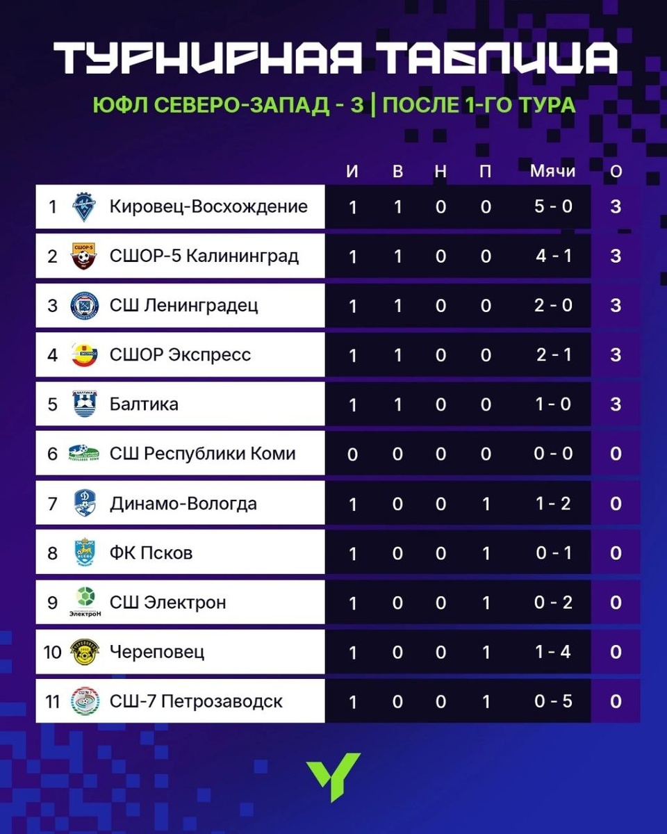 Турнраная таблица 📊 после 1 тура ⚽️🏆 ЮФЛ северо-запад