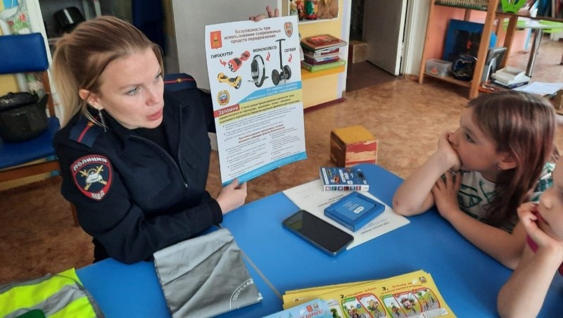 Полицейские рассказали детям о том, как правильно ездить на велосипедах и как важно использовать защитную экипировку, включая шлем, перчатки, налокотники и наколенники. Также они обсудили, как важно соблюдать правила безопасности на детских площадках, которые находятся рядом с дорогами.