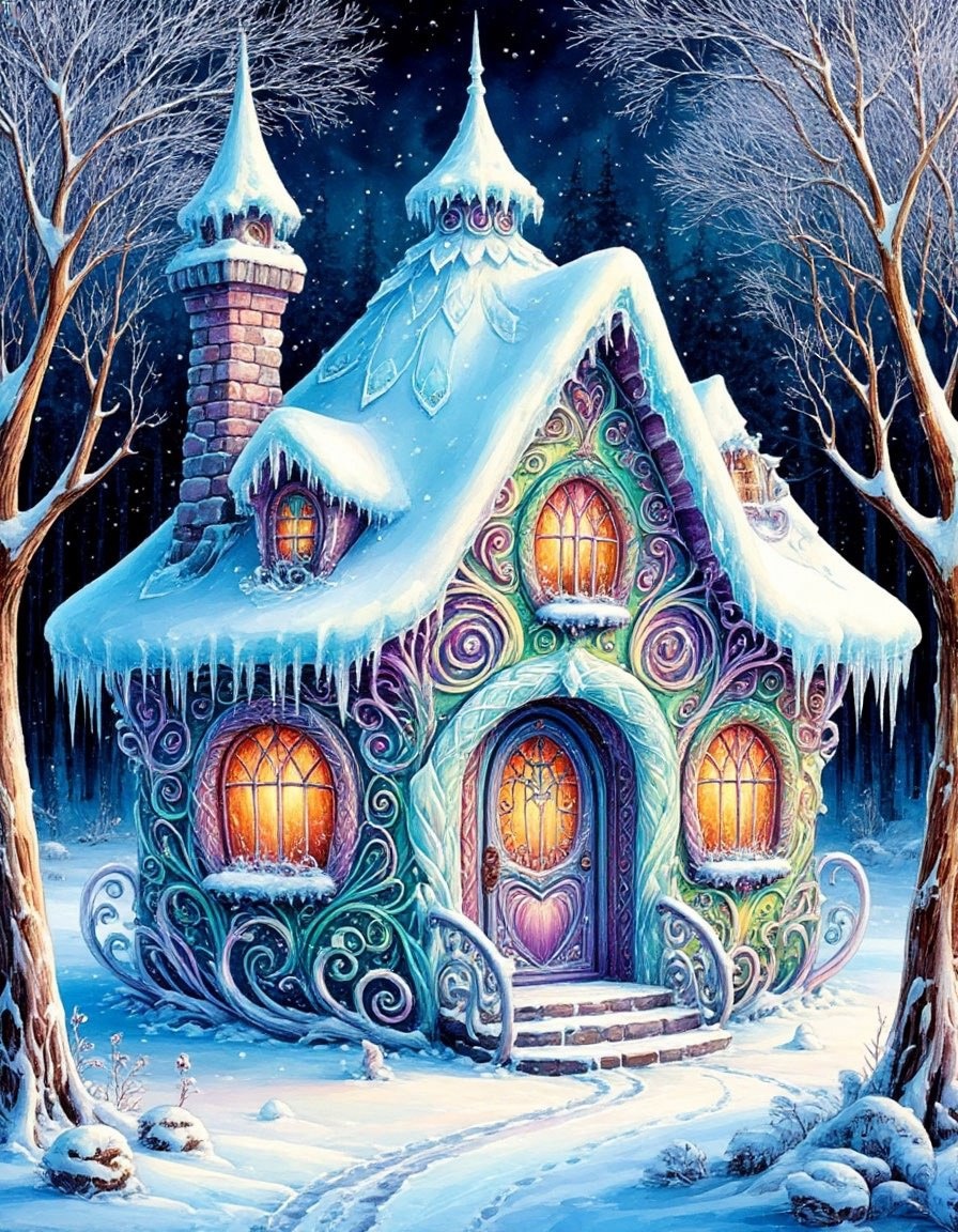 Зимняя сказочная ледяная хижина. Вдохновилась этой песней👇 «У леса на опушке жила Зима в избушке. Она снежки солила в берёзовой кадушке…» #цифроваяживопись #нейросеть #хижина #нейроарт #цифровоефото #рисунок #арт #нейрофото #артыотнейросетей #нейроSD #DigitalDreamscapes #fantasyart #digitalart #шедеврум #aiartwork #иллюстрация #снег #сказка #зима #идеи #ai #дом