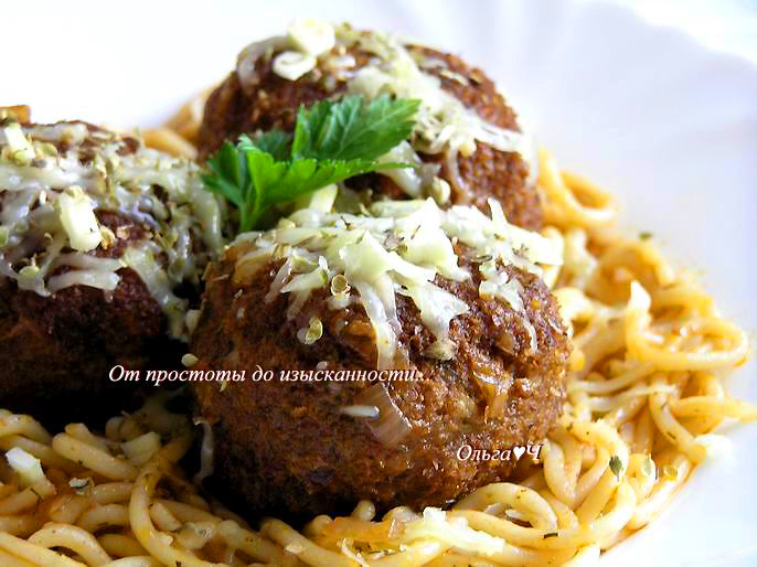 Подавайте тефтели со спагетти, посыпьте сыром, орегано, измельченным чесноком и смесью перцев.