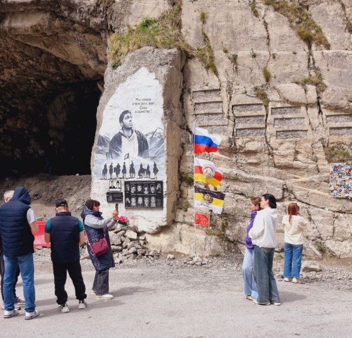 #нампишут изображение с Сергеем Бодровым на въезде в Геналдонское ущелье превратилось в алтарь для подношений. Этот мурал стал точкой притяжения туристов со всей России. Люди приезжают, фотографируются, делятся впечатлениями. Но всё чаще у стены начинают оставлять флаги, личные вещи и предметы, которые захломляют это место. Надо как-то доносить туристам: мурал — это не культовое место и не мемориал, это арт-объект, который уже несколько раз убирали от различного мусора, который скапливается у него.