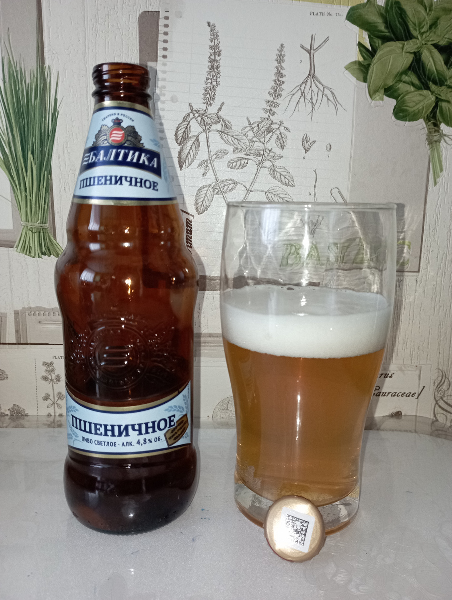 Традиция лить пиво в бутылки 0.44л у Балтики появилась достаточно давно, еще до повальной "шринкфляции". А вот характерная бутылочка больше известна по пиву "Балтика №7 мягкое" и безалкогольной версии этого пива. Не так давно вышло два сорта вроде как специально для сети "КиБ" - "Свежее" и "Разливное". Хотя вроде как "Разливное" уже было ранее - форму бутылки не помню. В любом случае - эти два сорта я не пробовал и не планирую. А вот "Пшеничное" решил взять. Отзывы снова самые разные. От "полная ерунда" до "хорошая пшеничка". Выпил я это пиво довольно давно, но только сейчас собрался написать на него отзыв.. Балтика Пшеничное. ТТХ 11.5 - 4.8. Производитель - ООО "Пивоваренная компания "Балтика". Санкт-Петербург. Стиль - Wheat Beer - Hefeweizen Дата производства - 11.01.2025 Дата дегустации - 27.02.2025 Оценка на untappd 3.12 "Новый нефильтрованный сорт «Балтика Пшеничное» разработан эксклюзивно для магазинов сети «Красное & Белое».