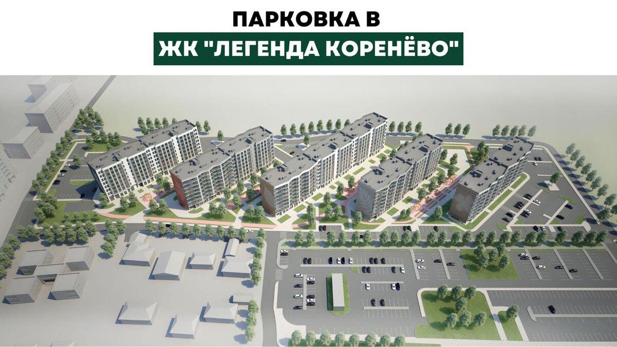 Парковка в жилом комплексе: 600 машиномест, в том числе с электрозарядками 🚗 ⠀ Мы понимаем, что парковка - это важный аспект комфортной жизни. Поэтому в ЖК «Легенда Коренёво» предлагается современное и удобное решение для вашего комфорта! ▫️Просторные парковочные места: ⠀ Мы обеспечиваем достаточно места для парковки всех автомобилей жителей (более 600 м/мест), чтобы вам не нужно было тратить время на поиск парковки по вечерам. ⠀ ▫️Безопасность вашего автомобиля: ⠀ Наш паркинг оснащен системами видеонаблюдения и безопасности, чтобы вы могли не беспокоиться о сохранности своего автомобиля. ⠀ ▫️Близкое расположение к подъездам: ⠀ Парковочные места расположены неподалеку от подъездов жилого комплекса, что обеспечивает удобный доступ к вашему жилью. ⠀ ▫️Парковка для маломобильных групп: ⠀ Мы также предоставляем специальные парковочные места для маломобильных групп, чтобы обеспечить комфортное перемещение для всех наших жителей. ⠀ ▫️Парковка для электромобилей: ⠀ Для тех, кто выбирает эко