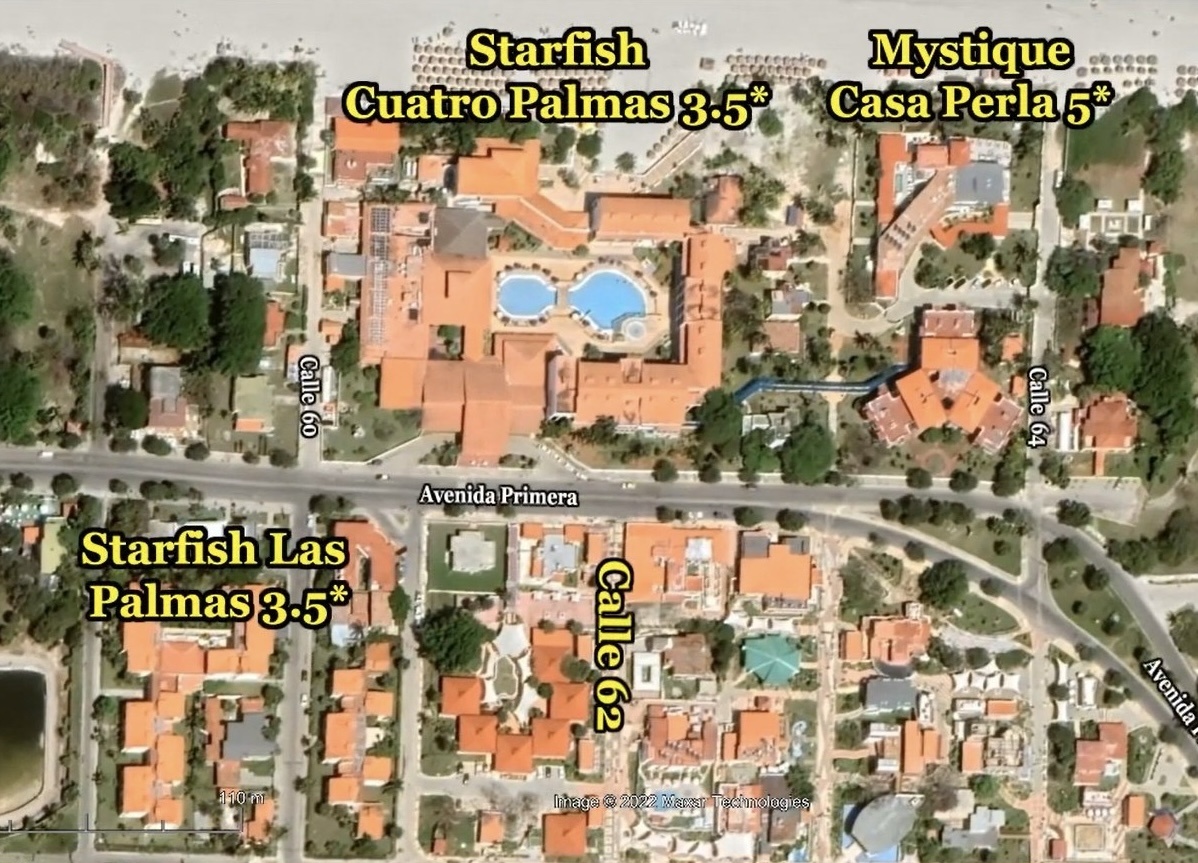 1. Starfish Cuatro Palmas 4* (16+) - отель на 1-ой линии пляжа и с другой стороны находится на главной улице центра Варадеро. 🛏️ 160 номеров на выбор: 1️⃣ Standard Room – с балконом/террасой (вид на море или дворик). 2️⃣ Superior Room – обновлённый вариант стандарта. 📍 *Оба типа – в основном корпусе Cuatro Palmas.* 3️⃣ Эконом-номера – те же удобства, но в бунгало через дорогу (Starfish Las Palmas 3*) 🍽️ Всё включено: - 🍴 3 ресторана: - Griddle Buffet – интернациональный шведский стол (завтрак, обед, ужин). - Spoons – международная кухня (закуски днём, ужин). - Aroma – кубинский ресторан (романтичные ужины). - 🍹 3 бара: - Aces Bar – национальные и интернациональные напитки (10:30–18:30). - Starlight Lounge – лучшие кубинские коктейли (6:00–24:00). - Spirits Bar – круглосуточная барная стойка. - Ежедневные занятия и организованные водные виды спорта на пляже и у бассейна - Вечерняя развлекательная программа - Фитнес-центр - Сауна - Снэк-бар