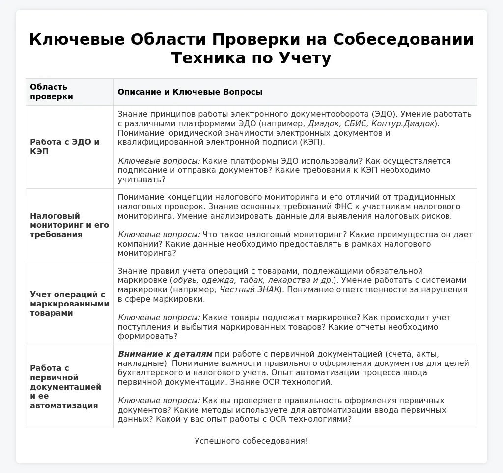 Как пройти собеседование на техника по учету в 2024-2025 годах