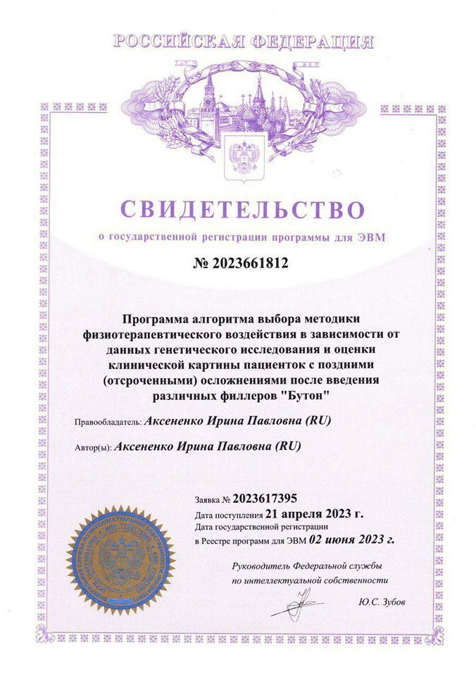 Отрывок из монографии Аксененко И.П. «Персонализированная физиотерапия пациенток с осложнениями после косметологических процедур», Москва, 2024 г Для удобства работы практического врача была предложена упрощенная схема выбора эффективного физиотерапевтического. Ориентиром для выбора предпочтительной методики лечения являются данные генетического исследования с выявлением высокой степени риска определенных групп генов и преимущественная клиническая картина (Б — боль, У — уплотнение, Т — Тиндаля эффект, О — отек, Н — нейропатия). Следовательно, результаты проведенного исследования дают основание рекомендовать разработанные физиотерапевтические методики, персонализация которых будет основываться на данных природы филлера, приведшего к осложнению, данных преимущественных характеристик клинической картины, функциональных исследований и выявленных высоких рисков групп генов при предварительных генетических исследованиях. Высокие риски исследуемого эффекта группы генов Б У Т О Н Выбор методи