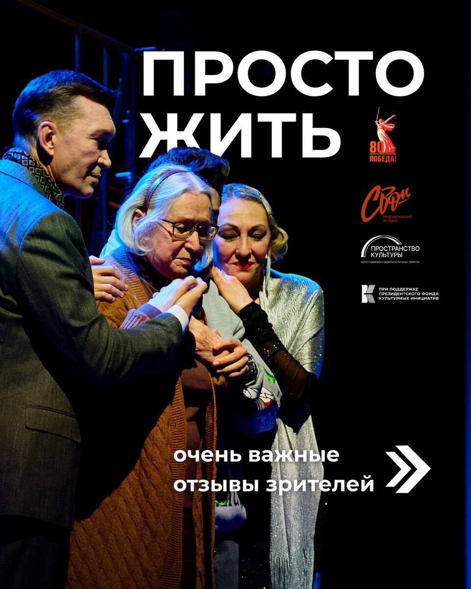 #к80летиюпобеды 😀«Я знаю, что ты меня ждёшь, и 😀только благодаря этому, я хочу 😀вернуться…» На премьерный показ спектакля «Просто жить» мы пригласили семьи участников СВО и подопечных благотворительных фондов. Это был самый ответственный и переживательный показ, ведь мы затронули непростую и тяжёлую тему. После обсуждения мы поняли, что всё не зря — мы говорим о важном. 😀😀😀😀😀😀😀😀😀😀 ПРОСТО ЖИТЬ драма, 14+ 😀5 мая, пн, 18:30 😀Театр им. Г. Кариева ул. Петербургская, д. 55б 😀Билеты на сайте kazan-tuz.ru можно купить по «Пушкинской карте» 😀Спектакль «Просто жить» — в рамках проекта «СВОи. Непридуманные истории», реализуемого с использованием средств гранта Президента Российской Федерации на реализацию проектов в области культуры, искусства и креативных индустрий. Больше информации в нашей группе, переходите