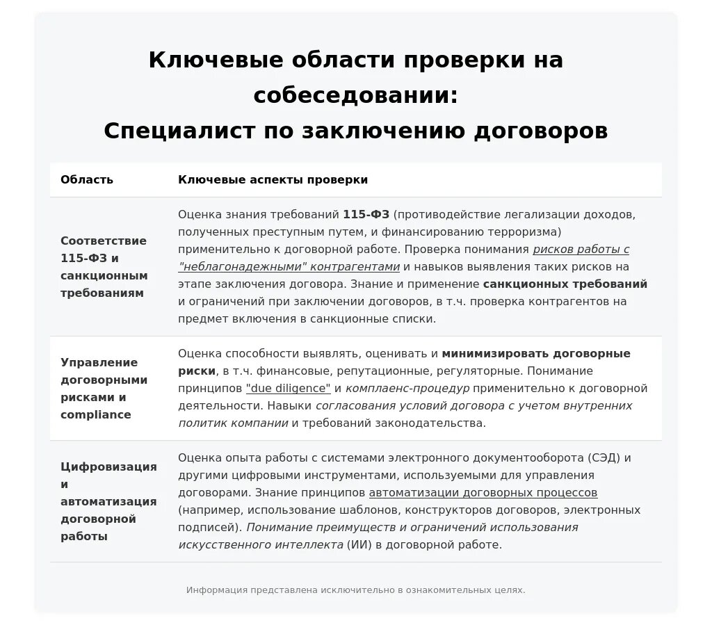 Подготовка к собеседованию на позицию специалиста по заключению договоров