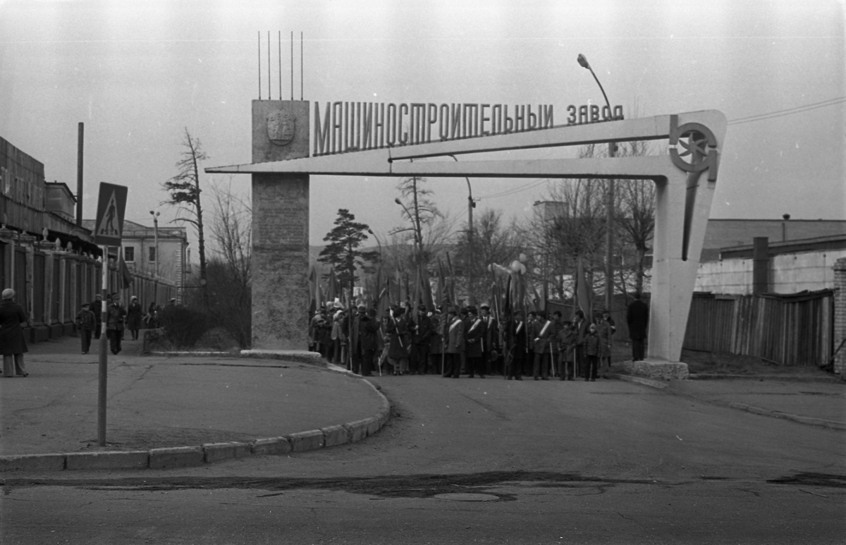 π ΠΠΎΠ»Π»Π΅ΠΊΡΠΈΠ² Π§ΠΈΡΠΈΠ½ΡΠΊΠΎΠ³ΠΎ ΠΌΠ°ΡΠΈΠ½ΠΎΡΡΡΠΎΠΈΡΠ΅Π»ΡΠ½ΠΎΠ³ΠΎ Π·Π°Π²ΠΎΠ΄Π° Π²ΡΡ ΠΎΠ΄ΠΈΡ Π½Π° ΠΏΠ΅ΡΠ²ΠΎΠΌΠ°ΠΉΡΠΊΡΡ Π΄Π΅ΠΌΠΎΠ½ΡΡΡΠ°ΡΠΈΡ Π½Π° ΠΠΎΠ²ΠΎΠ±ΡΠ»ΡΠ²Π°ΡΠ½ΠΎΠΉ, 1979 Π³ΠΎΠ΄