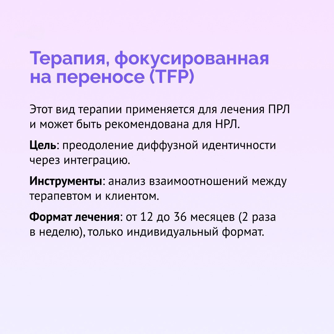 🔹 Чувство пустоты и непонимание себя Терапия, сфокусированная на переносе (TFP), разработанная Отто Кернбергом, — один из самых эффективных методов лечения ПРЛ. Она сочетает глубинную проработку причин расстройства с структурированным подходом, что дает долгосрочный результат. Люди с ПРЛ часто видят мир в крайностях: Пример из практики: