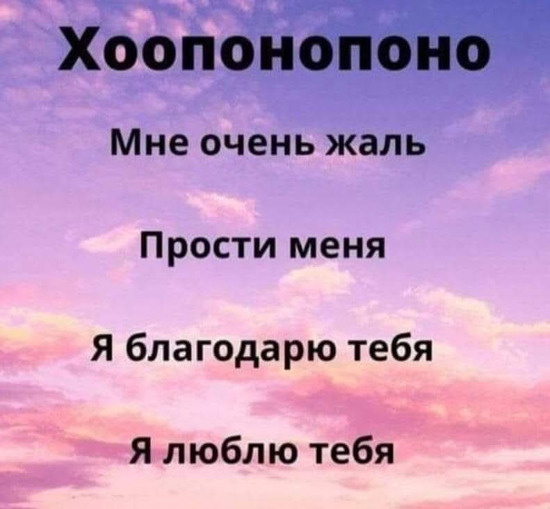 МНЕ ОЧЕНЬ ЖАЛЬ. Смысл этой фразы состоит в следующем: «Мне очень жаль, что своими прошлыми мыслями, словами и действиями я создал (или привлек в свою жизнь) эту проблему».