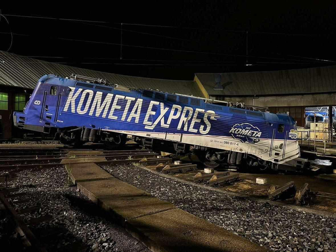 В ночь с 3 на 4 апреля 2025 года, электровоз Шкода 380.017 упал в поворотный круг локомотивного депо Прага-Вршовице. Причина схода не правильное закрепление на тормозных башмаках. Благодарю за внимание!