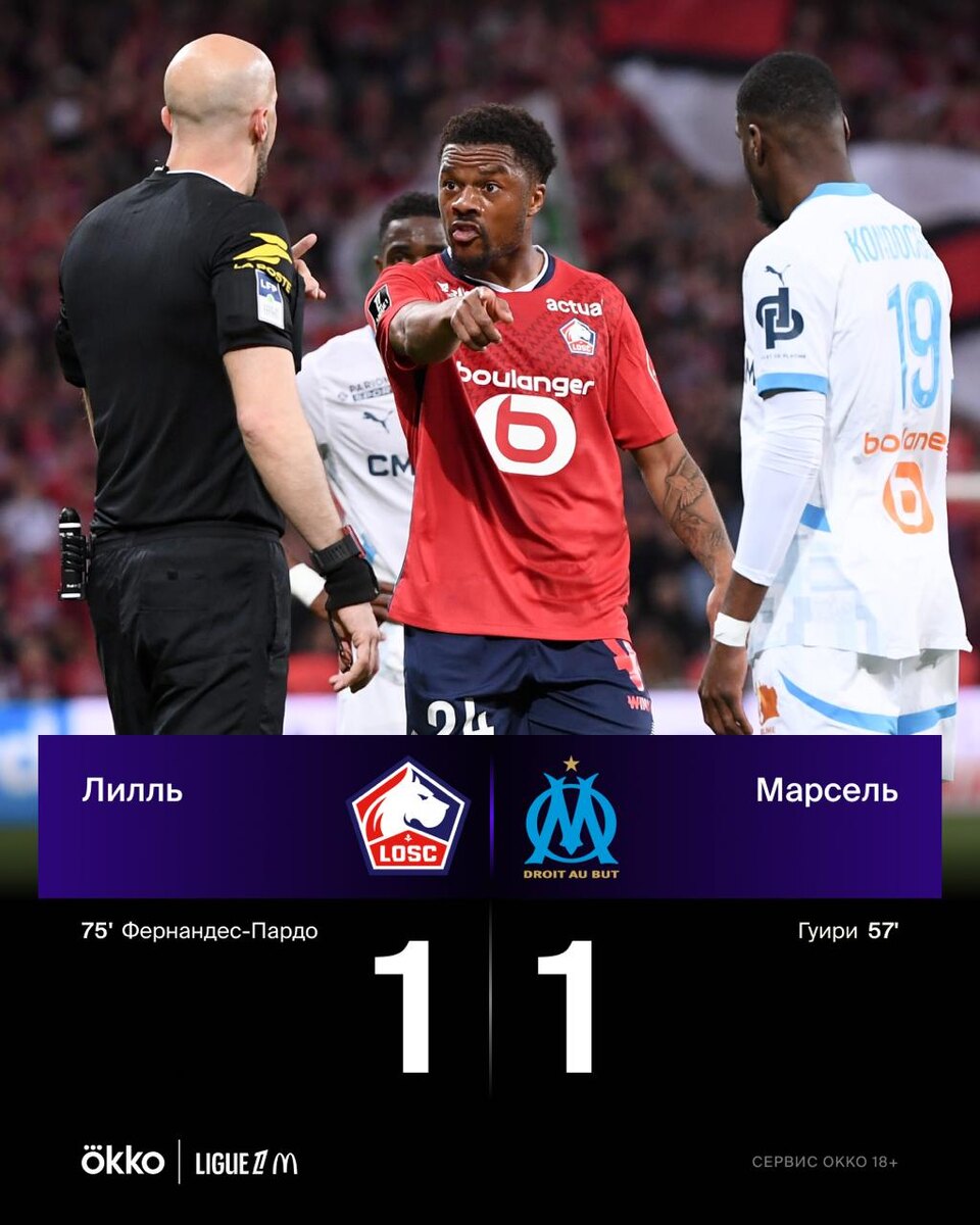 Ничья в главном матче 32-го тура Лиги 1. В топ-6 по-прежнему очень плотно 😨 «Марсель» пока на втором месте, а «Лилль» только на пятой строчке и все еще мимо ЛЧ. Тяжело 😬