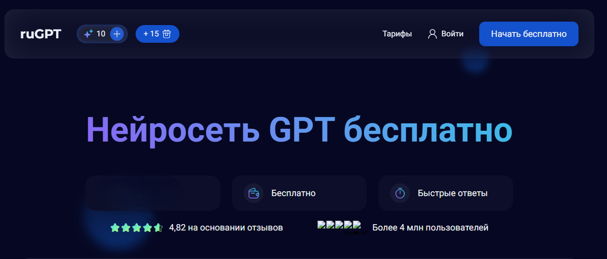 Платформа RuGPT предлагает четыре тарифных плана — от бесплатного до продвинутого, каждый из которых подходит под разные задачи и частоту использования.