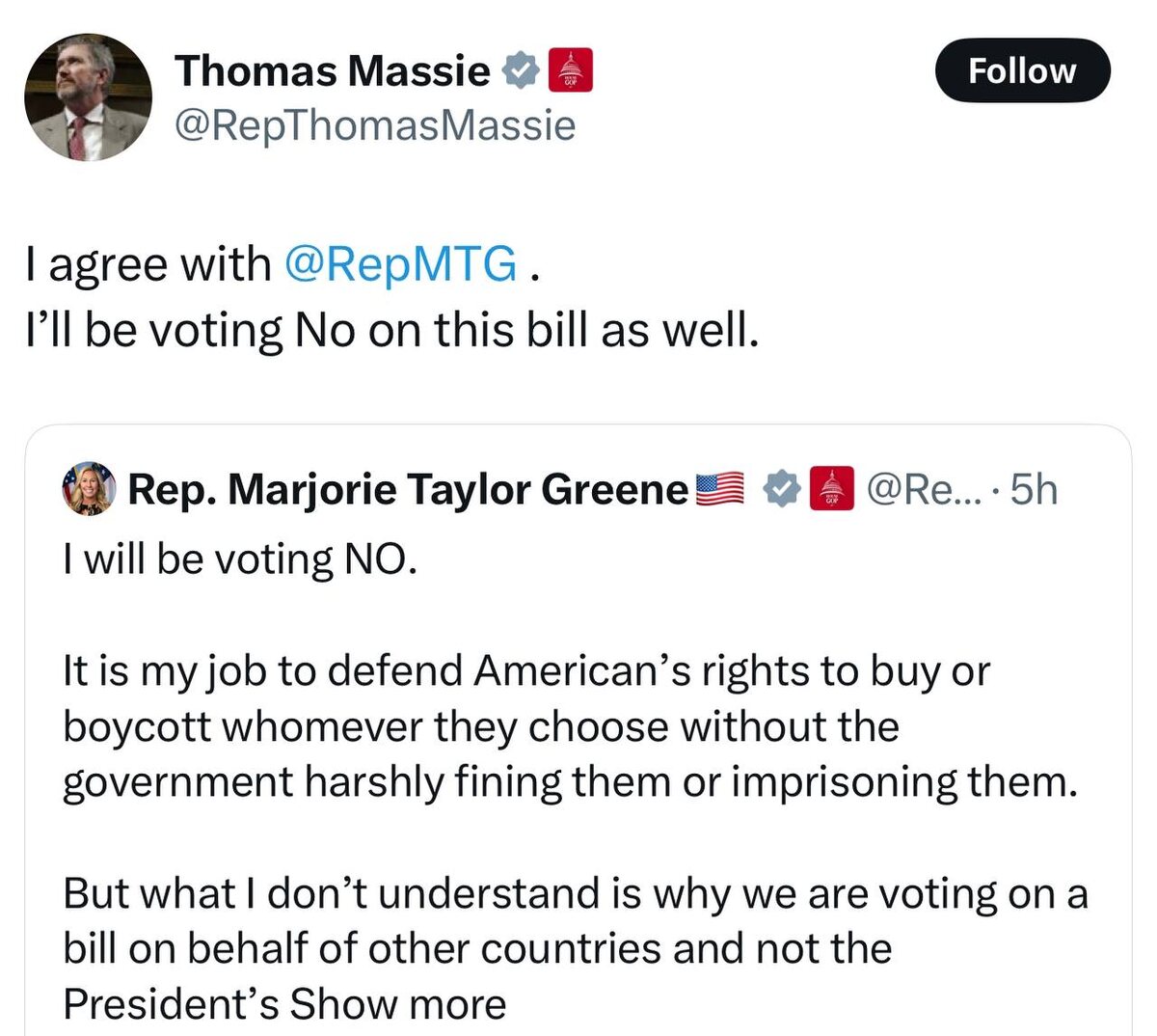 Representatives MTG and Thomas Massie rally against GOP bill that includes possible million-dollar fines or jail time for boycotting Israel #Congress