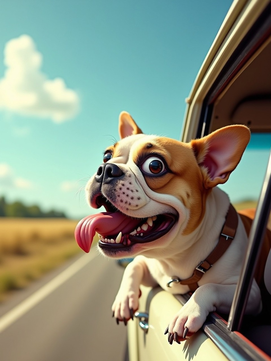 «Поездка в машине». Нейросеть: Leonardo. Preset: Flux. #цифроваяживопись #нейросеть #фентези #нейроарт #арт #идеи #цифровоефото #ai #рисунок #нейрофото #артыотнейросетей #DigitalDreamscapes #fantasyart #digitalart #leonardo #aiartwork #иллюстрация #лето #мультик #машина #собака #бульдог #flux