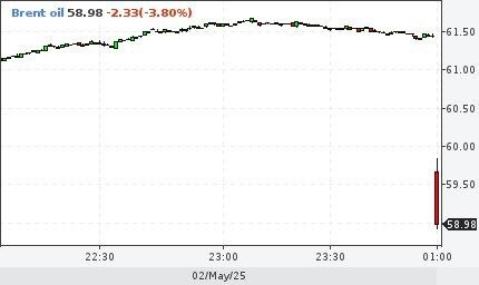 В ответ на пост 🔥Нефть марки Brent упала на 2.98% до $59/баррель за одну минуту❗️☝️