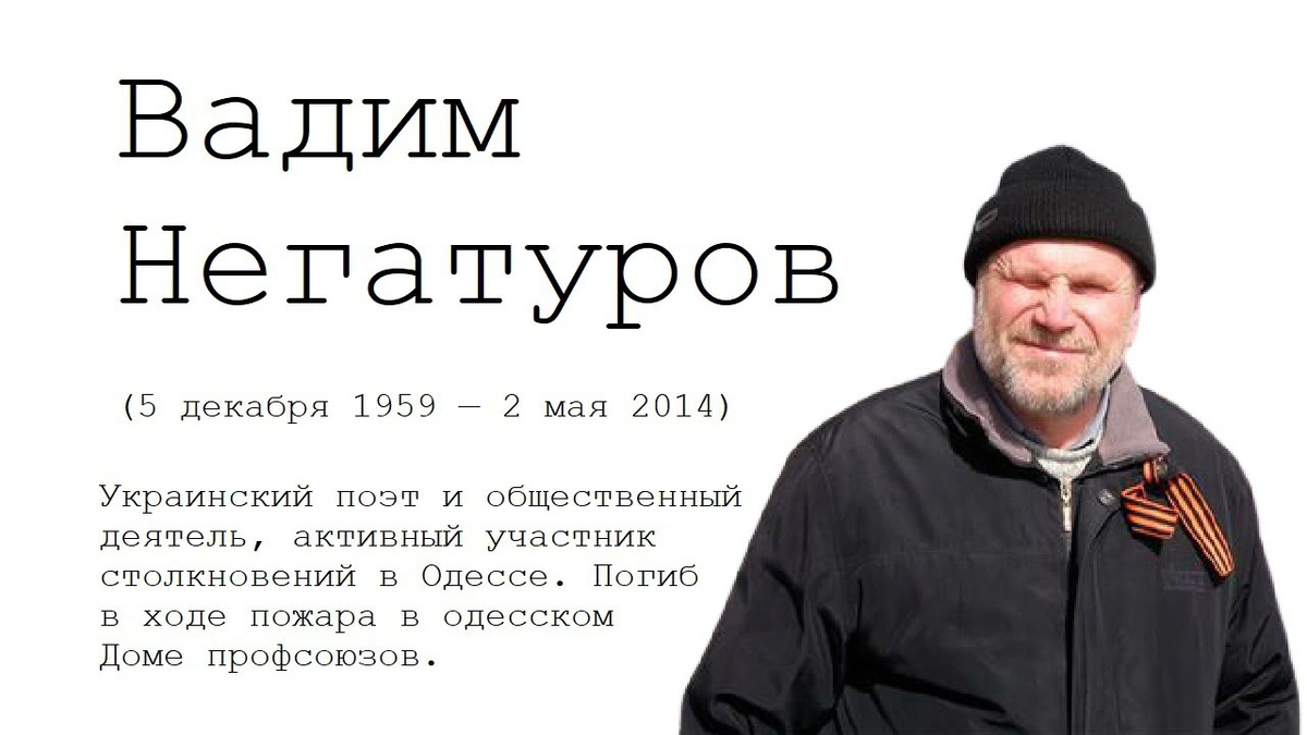 Автор стихов, поэт Вадим Негатуров, погиб в Одессе, в Доме профсоюзов, 2 мая 2014 года. Вечная память! Царствия Небесного!