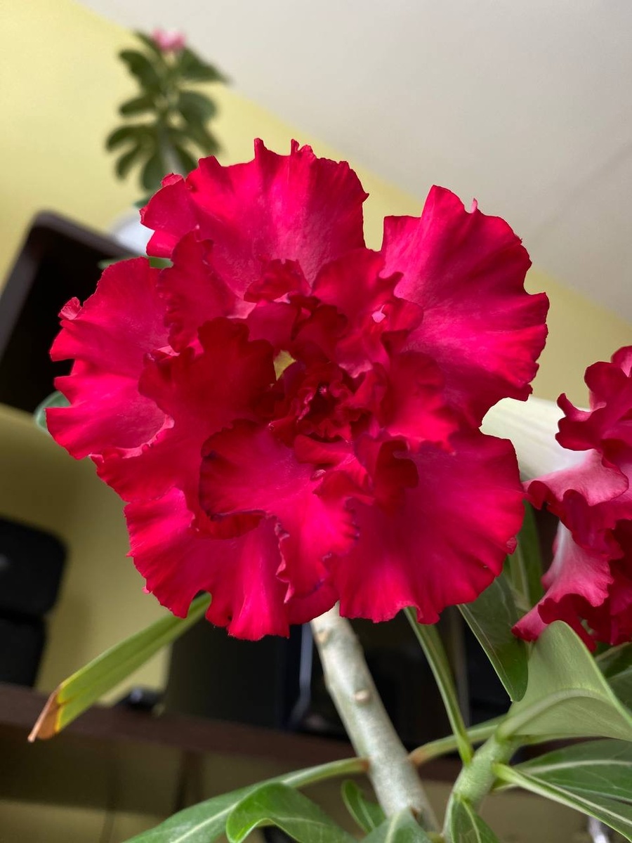 Рассказываю о своих адениумах. Этот прекрасный махровый бутон, по-настоящему похожий на розу, стал для меня радостным сюрпризом. От посадки семян до первого цветения прошло более пяти лет. Почему он так долго не цвел? Я могу сказать совершенно определенно. Я сама задерживала цветение. Этот сорт никак не называется. Цветение сюрпризное. Растение выращено из семечка. Как? Расскажу непременно. Ведь это интересно и всегда вызывает особенно частые вопросы. Почему адениум не цветет? Одно дело, когда растение не подвергается никакому вмешательству со стороны человека. То есть, не обрезается главный корень, а также крона. Если случатся пересадка растения в горшок побольше, то лишь аккуратная перевалка без повреждения корней. Адениум саморазвиватся. Растет как ему вздумается вширь, вниз и вверх. Но при этом не цветет и даже не пытается. Но ведь ему созданы все условия. Отличный состав грунта, освещение, удобрения и разумный полив. Растение красиво и здорово, но не цветет. Почему? Скажу отк