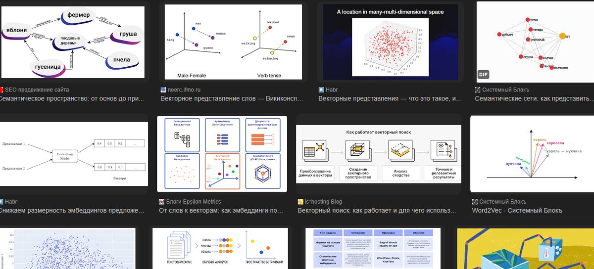 Свойства векторных представлений позволяют проводить простые арифметические операции, приводящие к семантически осмысленным результатам. Например: