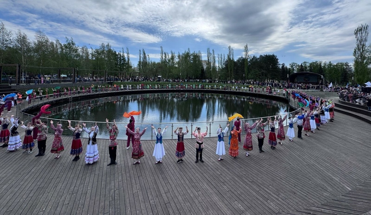 Вчера, 4 мая, в уфимском парке «Первомайский» прошел фестиваль «Уфа – город дружбы и единства», посвященный 80-летию Победы. Впервые в рамках фестиваля состоялись Парад счастливых семей и мероприятие «Семья. Мир. Труд. Май». Гости праздника увидели выставки, мастер-классы, показательные выступления по национальным видам спорта. Министр семьи, труда и соцзащиты Башкирии Ленара Иванова и глава администрации Калининского района Уфы Газизьян Ахмедьянов поздравили участников. Были награждены замещающие семьи: Александра Башкирцева и Зульфии Газимовой как «Лучшая приемная семья Уфы», а также Дмитрий и Алла Матузко как «Лучшие опекуны Уфы». На сцене выступили творческие коллективы, работали подворья с национальным колоритом, выставка ремесленников и пункты питания. Завершился фестиваль «Хороводом дружбы» и запуском фонтана. Фото: администрация Уфы.