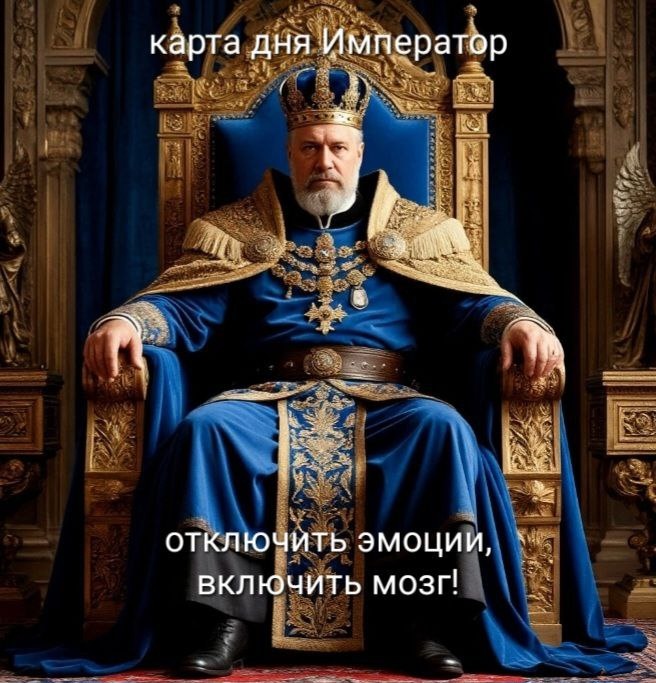 Карта дня Император Отключите свою внутреннюю Бузову и мозги свои включите! Это карта сильной мужской энергии. Она говорит, что сегодня не подходящий день для свидания и проявления чувств. Время для осмысления ситуации и жизни в целом. Советую Вам сегодня подходить к делам с умом и прогматизмом. Если перед Вами встанет выбор, то сегодня сердце плохой советчик. Решайте только хорошенько всё обдумав. Если сегодня будете действовать хладнокровно, то карта сулит справедливое решение в любой ситуации, поддержку сильного, влиятельного авторитета. Карта советует отстаивать свои права и позицию, бороться за них. Как мы приходим к хладнокровию? Замедляемся, несколько глубоких вдохов и выдохов, медленно, сосредоточенно. Когда дышим - сосредоточены только на дыхании. Потом начинаем думать. Только потом делаем. #энергиядня #советдня #совет #нумерология #астрология #сон #таро #гадание