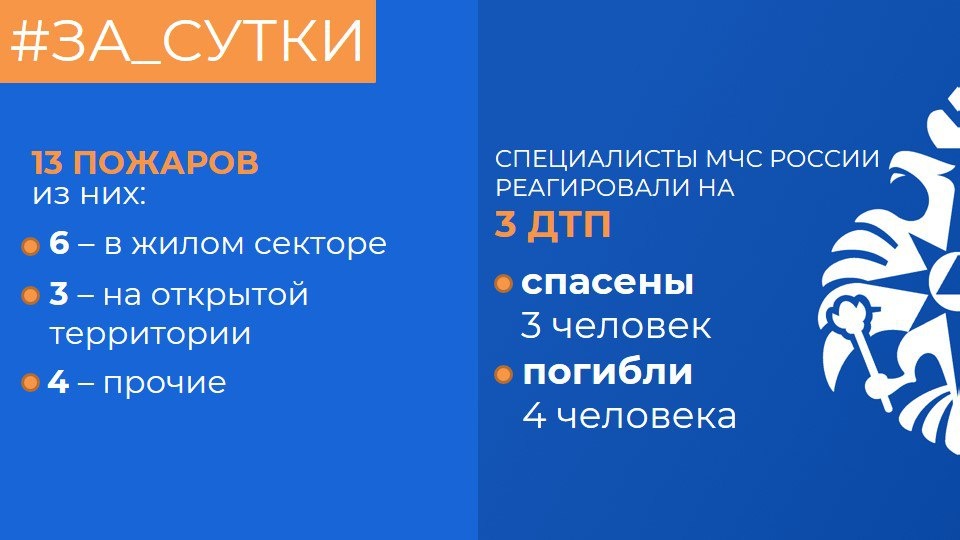 π©βπΠΠ§Π‘ Π ΠΎΡΡΠΈΠΈ: Π·Π° ΠΏΡΠΎΡΠ΅Π΄ΡΠΈΠ΅ ΡΡΡΠΊΠΈ Π»ΠΈΠΊΠ²ΠΈΠ΄ΠΈΡΠΎΠ²Π°Π½ΠΎ 13 ΠΏΠΎΠΆΠ°ΡΠΎΠ², ΡΠΏΠ°ΡΠ΅Π½Ρ 3 ΡΠ΅Π»ΠΎΠ²Π΅ΠΊΠ°, ΠΏΠΎΠ³ΠΈΠ±Π»ΠΈ 4 ΡΠ΅Π»ΠΎΠ²Π΅ΠΊΠ°